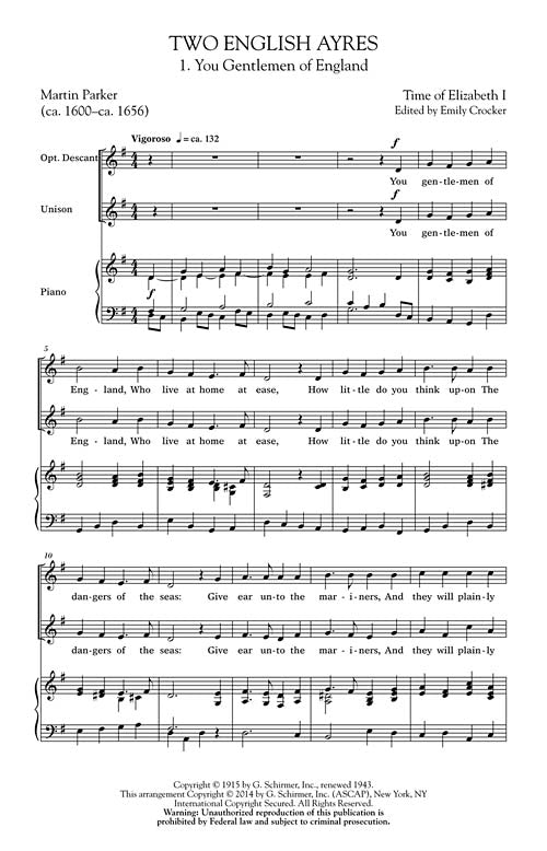Two English Ayres Choral SA Arranger: Emily Crocker
