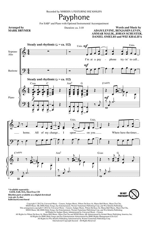 Hal Leonard Payphone Sab Sab
