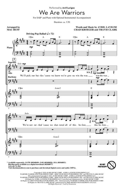 We Are Warriors Sab Pop Choral Series Avril Lavigne