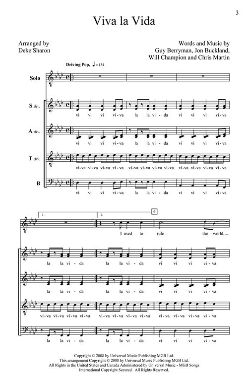 Viva La Vida Satb Divisi A Cappella Coldplay
