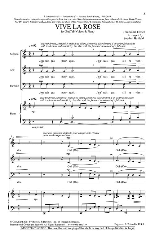 Vive La Rose In High Voice Arranger Stephen Hatfield
