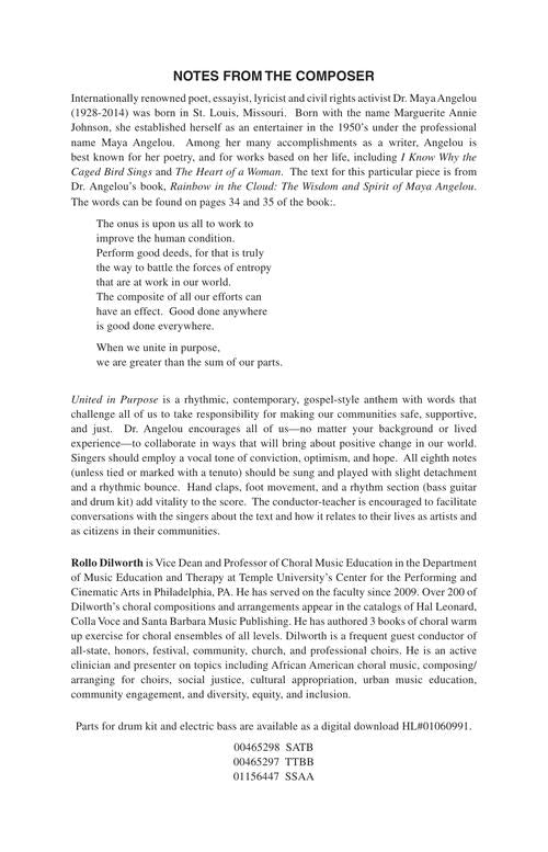 United In Purpose Eugene Rogers Choral Series Ttbb