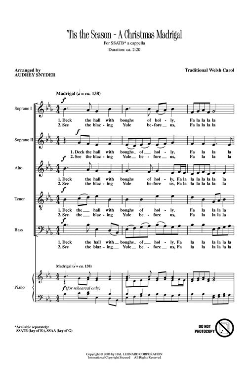 Tis The Season A Christmas Madrigal Ssatb A Cappella Arranger