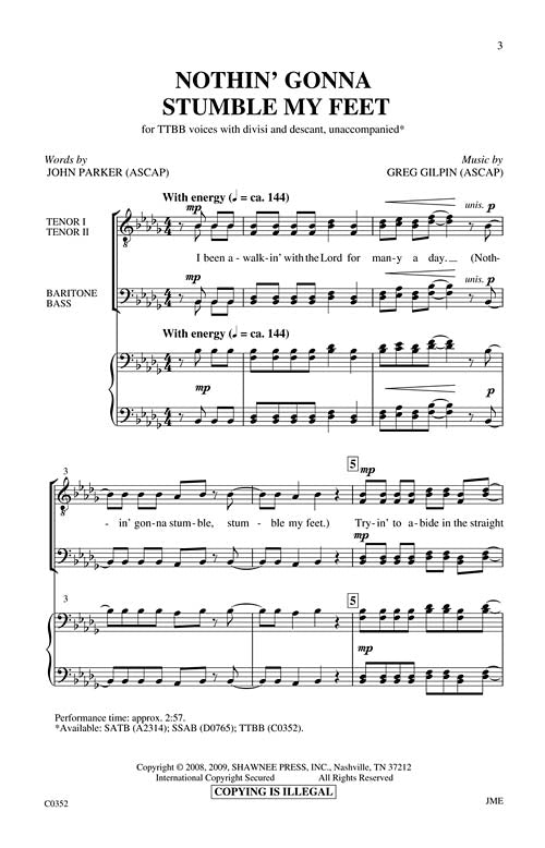 Nothin Gonna Stumble My Feet Ttbb A Cappella Greg Gilpin