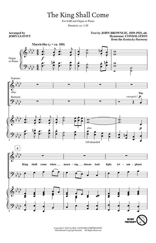 The King Shall Come Sacred Choral Sab Kentucky Harmony