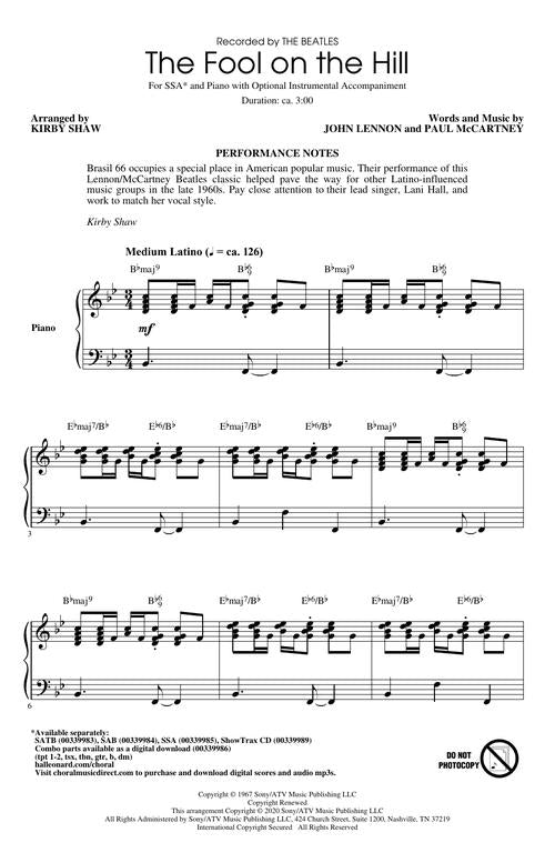 The Fool On The Hill Ssa Pop Choral Series Sergio Mendes