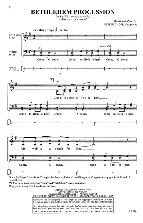 Bethlehem Procession Satb A Cappella Pepper Choplin