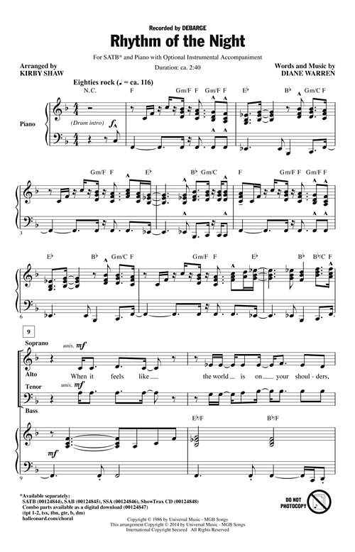 Rhythm Of The Night Pop Choral Series Satb Debarge