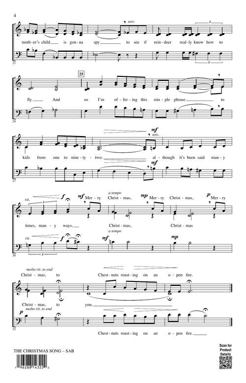 The Christmas Song (Chestnuts Roasting on an Open Fire)Publisher: Hal LeonardCategory: ChoralSeries: Secular Christmas ChoralFormat: OctavoPerhaps your ensemble has sung The Christmas Song many times, many ways ... but this is a truly special treatment. Simple...Regular price $29.99 -