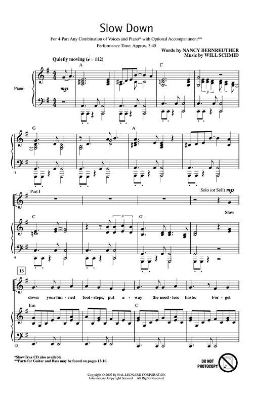 Slow Down 4 Part Any Combination Will Schmid