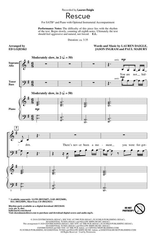 Rescue Ssa Pop Choral Series Lauren Daigle