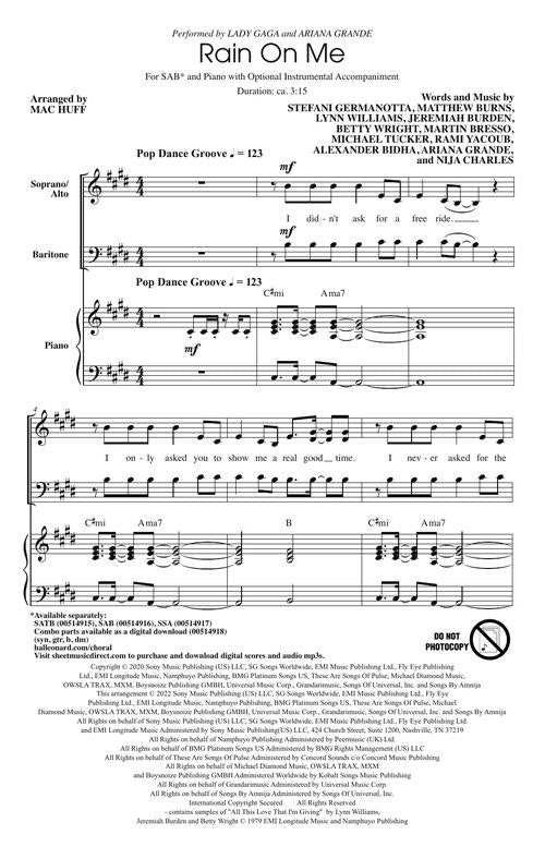 Rain On Me Sab Pop Choral Series Lady Gaga