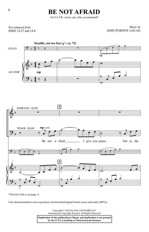 Be Not Afraid Shawnee Sacred Satb Cello