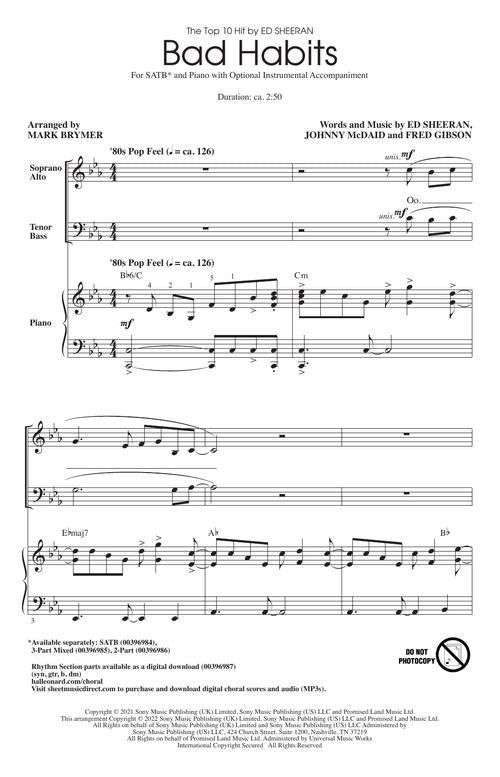 Bad Habits Satb Pop Choral Series Ed Sheeran