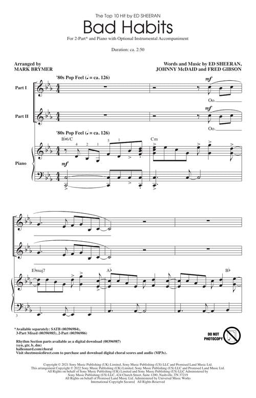 Bad Habits 2 Part Pop Choral Series Ed Sheeran