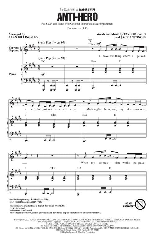 Anti Hero Sab Pop Choral Series Taylor Swift