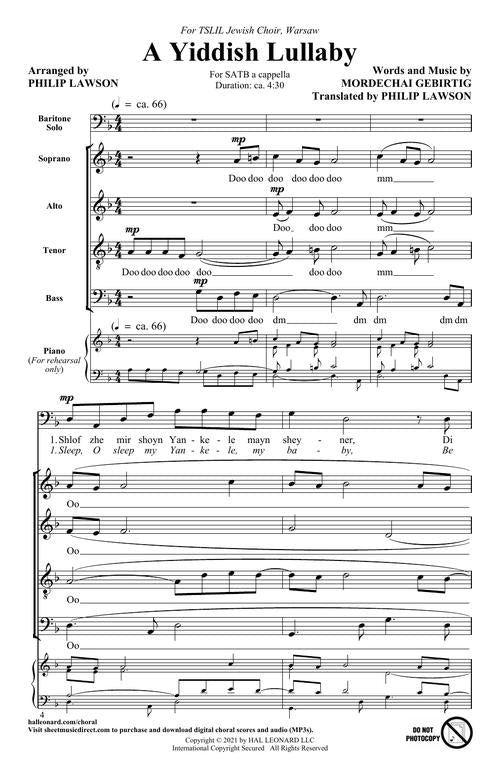 A Yiddish Lullaby Baritone Voice Satb