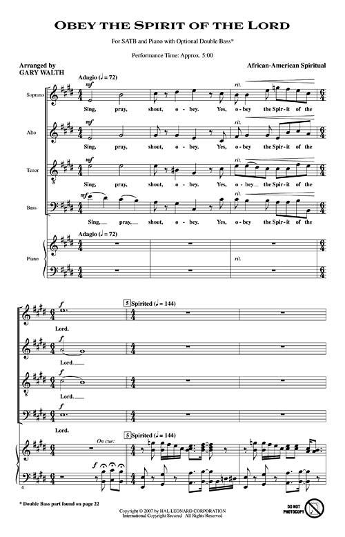 Obey The Spirit Of The Lord Satb Arranger Gary Walth