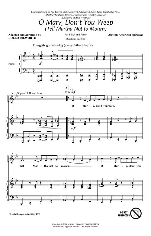 O Mary Dont You Weep Henry Leck Creating Artistry Ssa Arranger