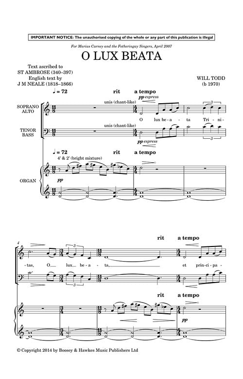 O Lux Beata Boosey Hawkes Sacred Choral Will Todd