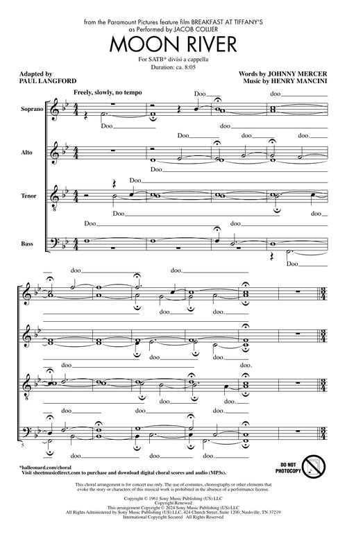 Moon River Ssaattbb A Cappella Pop Choral Series