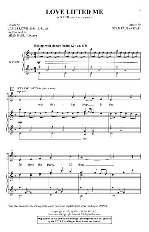 Love Lifted Me Shawnee Sacred Satb