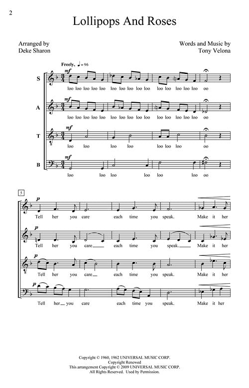 Lollipops And Roses Satb A Cappella Arranger Deke Sharon