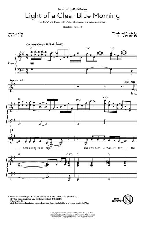 Light Of A Clear Blue Morning Sab Pop Choral Series Dolly Parton
