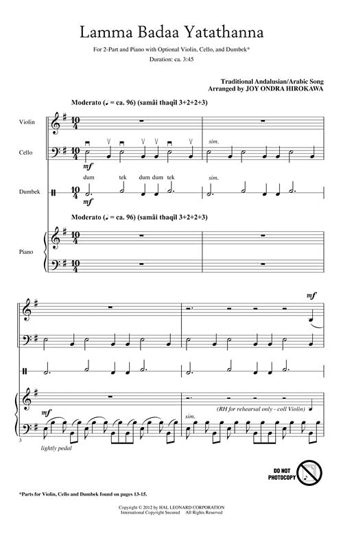 Lamma Badaa Yatathanna Henry Leck Creating Artistry 2 Part Treble