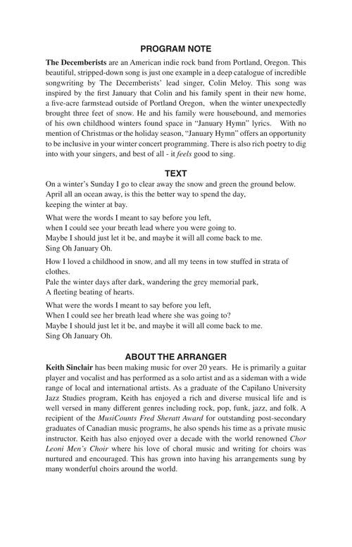 January Hymn Carrie Tennant Choral Series Sab Colin Meloy