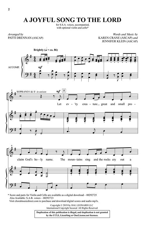 A Joyful Song to the Lord Shawnee Sacred SSA Jennifer Klein
