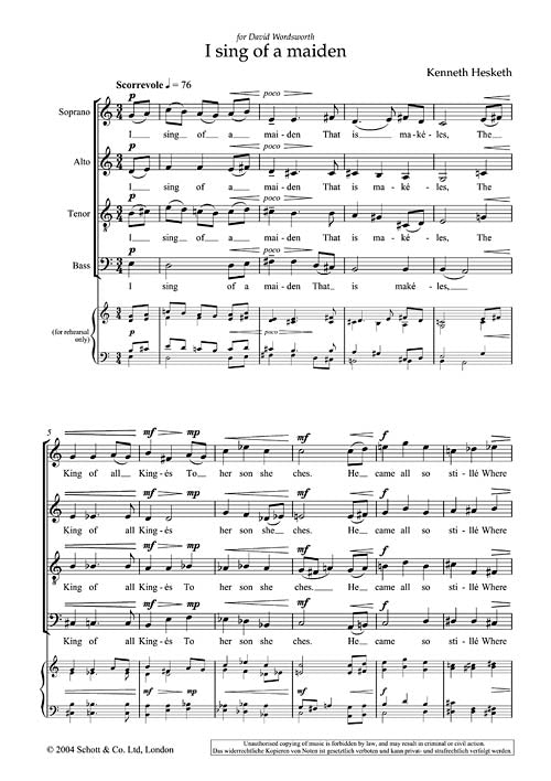 I Sing Of A Maiden Mixed Chorus Kenneth Hesketh
