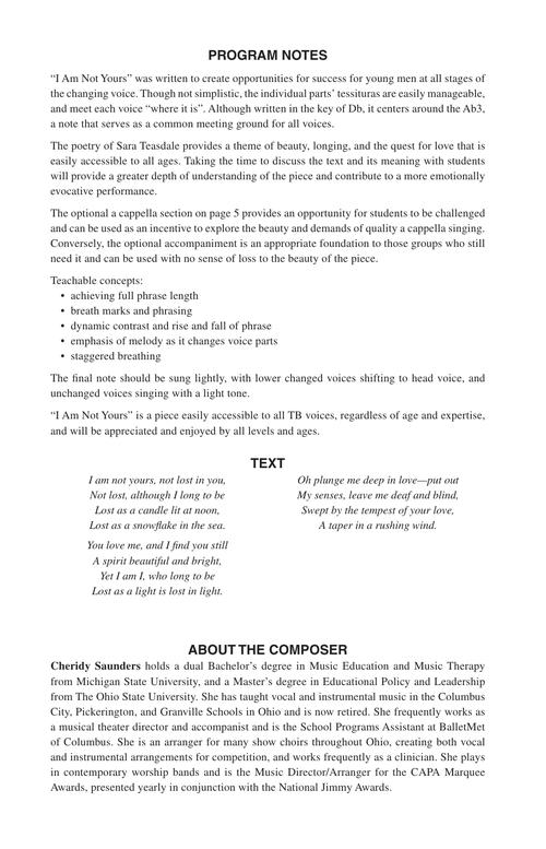 I Am Not Yours Ttbb Jonathan Palant Choral Series