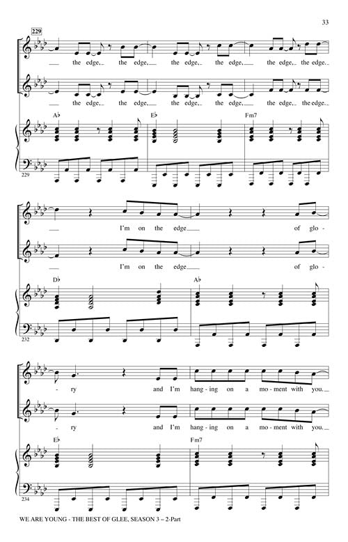 We Are YoungThe Best of Glee, Season 3 MedleyPublisher: Hal LeonardCategory: ChoralSeries: Pop Choral SeriesFormat: PaperbackSeason 3 of Glee saw changes for its cast, but the music remains as strong a focus as ever! This 9-minute...Regular price $39.99 -