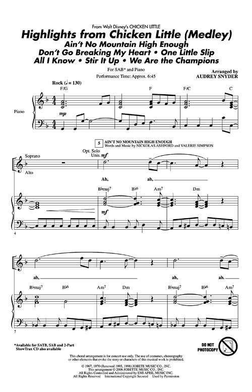 Highlights From Chicken Little Medley Sab Arranger Audrey Snyd