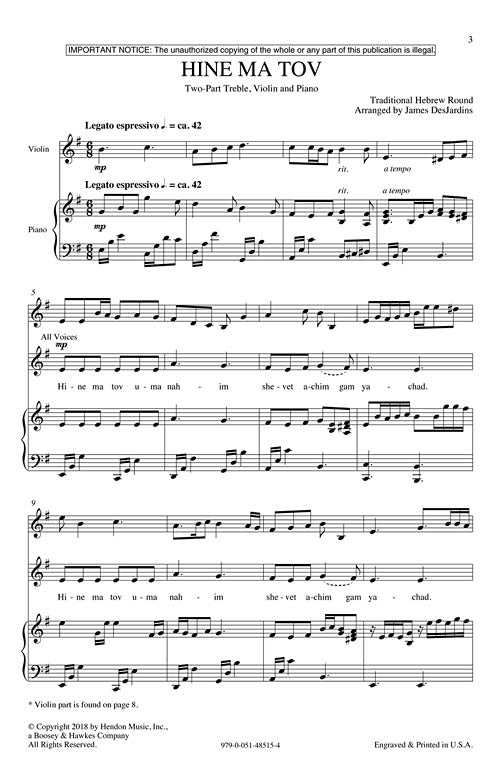 Hine Ma Tov Bh Secular Choral Arranger James Desjardins