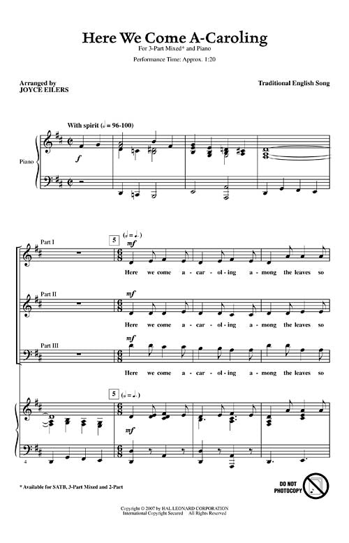 Here We Come A Caroling 3 Part Mixed Arranger Joyce Eilers
