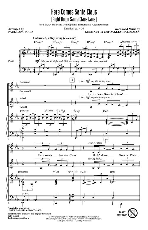 Here Comes Santa Claus Right Down Santa Claus Lane Satb Arrange