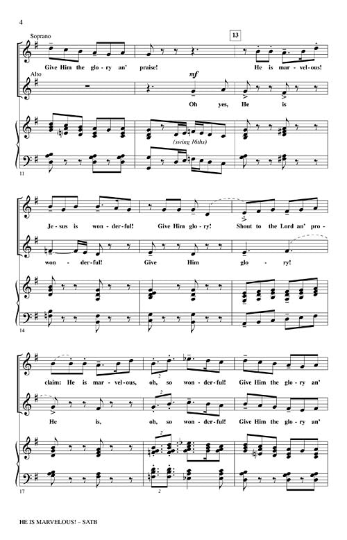 He Is Marvelous Sacred Choral Satb Rosephanye Powell