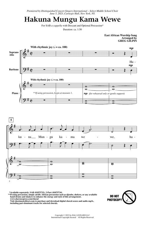 Hakuna Mungu Kama Wewe Sab Opt Accompaniment