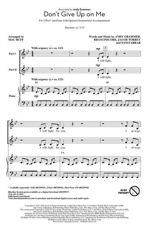 Dont Give Up On Me 2 Part Pop Choral Series Andy Grammer