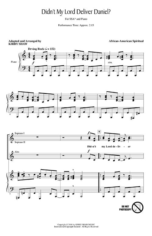 Didnt My Lord Deliver Daniel Ssa Arranger Kirby Shaw
