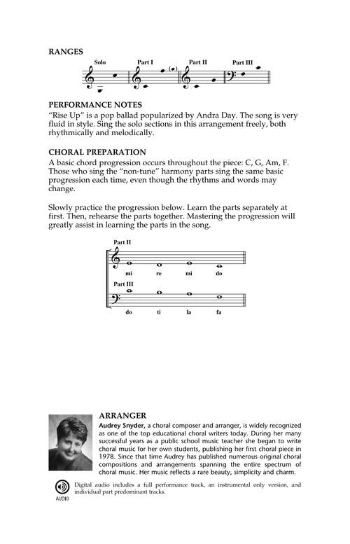Rise UpDiscovery Level 2Publisher: Hal LeonardCategory: ChoralSeries: Discovery ChoralFormat: OctavoHere's the piece to let your soloist shine! This inspirational, expressive, and stirring pop ballad features solo singing on each of the verses and easy to learn...Regular price $33.99 -