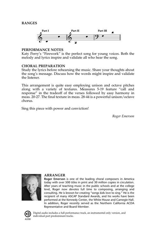 FireworkDiscovery Level 1Publisher: Hal LeonardCategory: ChoralSeries: Discovery ChoralFormat: OctavoThis timeless Katy Perry piece makes the perfect addition to any middle school choir. The arrangement employs both unison singing along with carefully crafted harmony set in a...Regular price $29.99 -