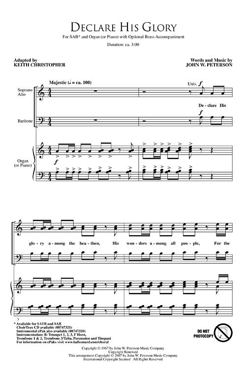 Declare His Glory Brookfield Choral Series Sab John W Peterson