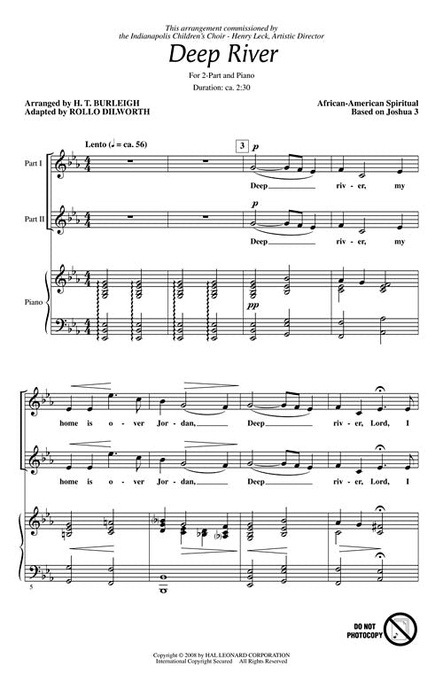 Deep River Henry Leck Creating Artistry 2 Part Arranger Rollo Di