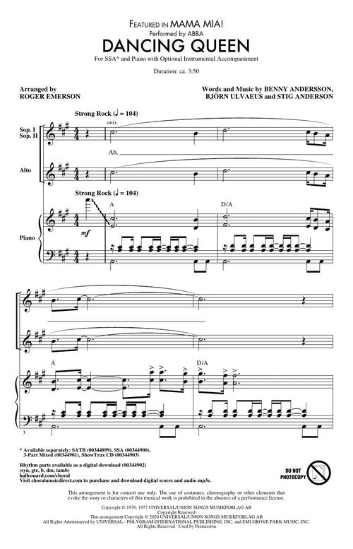 Dancing Queen Ssa Pop Choral Series Abba
