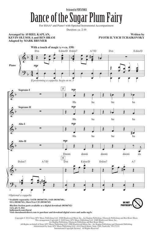 Dance Of The Sugar Plum Fairy Ssaa Opt A Cappella Peter Ilyich T
