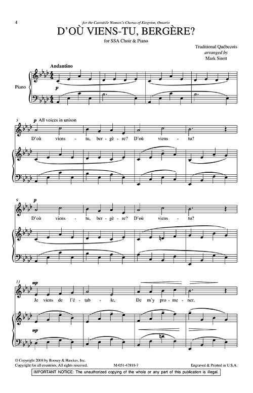 Dou Viens Tu Bergere Holiday Lights Arranger Mark Sirett