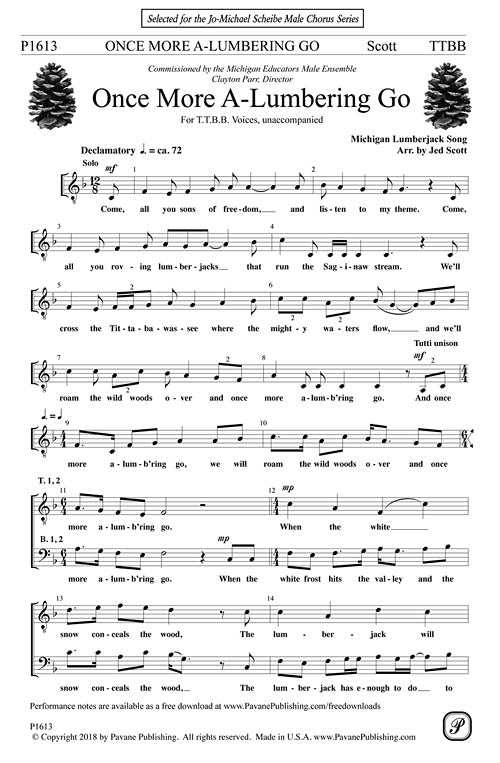 Once More A-lumbering GoComposer: Jed Scottarr. Jed ScottPublisher: Pavane PublishingCategory: ChoralSeries: Pavane SecularFormat: OctavoVoicing: TTBBSelected for the Jo-Michael Scheibe Male Chorus Series, could a lumberjack story be any more appropriate for the men's choir? Premiered at...Regular price $29.99 -